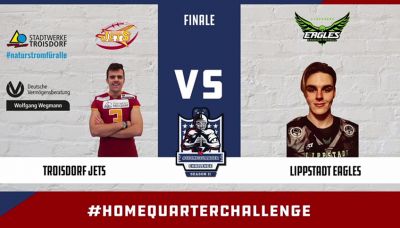 Was für ein Krimi! Am vergangenen Wochenende fand die zweite Auflage der Homequarterchallenge, einem E-Sports-Turnier für 21 Vereinsmannschaften aus ganz Deutschland, statt. Die Troisdorf Jets haben es dabei bis ins Finale geschafft und mussten sich am Ende den Lippstadt Eagles äußerst knapp mit 17:21 geschlagen geben.