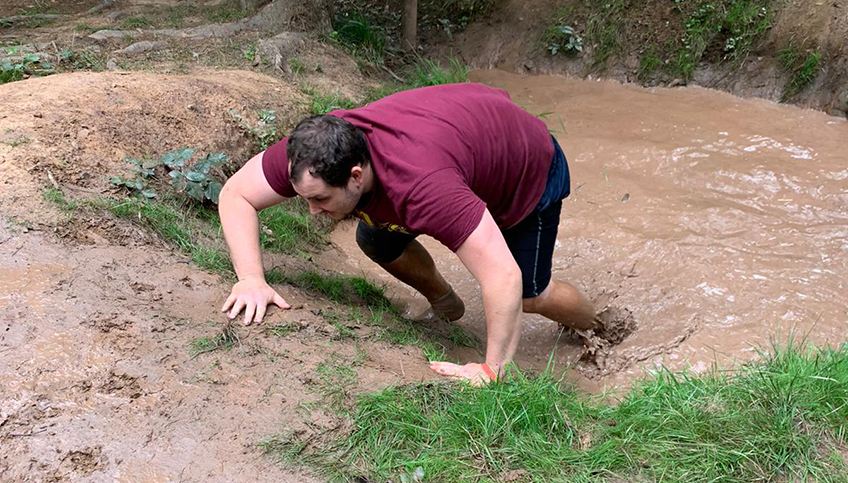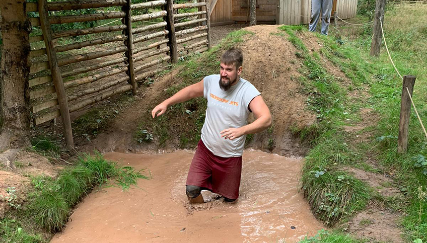 Einfallslosigkeit kann man den Erfindern des insgesamt 900 Meter langen Naturparcours in Nettersheim dabei definitiv nicht vorwerfen. Es musste geklettert, gekrochen, gerannt, gerutscht und gesprungen werden. Zusätzlich zum Balancieren über wackelige Hindernisse durfte natürlich auch der Sprung über bzw. in den mit feinstem Matschwasser gefüllten Graben nicht fehlen.