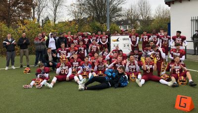 Als dann der erlösende Anruf von Kai Wiering aus Köln kam, das die Crocodiles mit 33:0 gegen die Falcons gewonnen hatten, kannte der Jubel keine Grenzen mehr. DER TRAUM WURDE WAHR! Die RookieJets klettern am letzten Spieltag auf den 1. Platz und sind Regionalligameister.