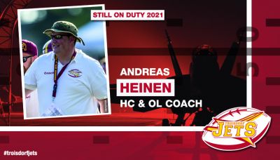 Den Abschluss in der Vorstellungsrunde der Trainercrew der Troisdorf Jets Seniors macht Head Coach Andreas Heinen. Er wird auch 2021 das Team in der Regionalliga NRW anführen und ist damit „Still on Duty“. Rechnet man die ausgefallene Saison im vergangenen Jahr mit, startet der 45-Jährige in sein sechstes Jahr als Cheftrainer der Jets.