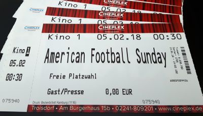 Bequeme Kinosessel, die riesige Leinwand und nicht zuletzt ein hochspannendes Spiel sorgten für ein ganz besonderes Erlebnis. Theaterleiter Mario Damm und seine Mitarbeiter, die sich extra für die Footballfreunde die Nacht um die Ohren schlugen, zeigten sich als hervorragende Gastgeber.