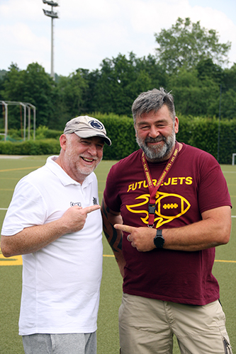 Zu Recht bei bester Stimmung: die Head Coaches Stephan Humberg (Reapers, links) und Udo Volberg (FutureJets).