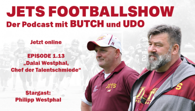 Aber in dieser Folge der Jets Footballshow musste es wohl so sein. Das kongeniale Moderatoren-Duo Udo Volberg und Stephan „Butch“ Pohl ist ausnahmsweise zu einem Uno geworden.