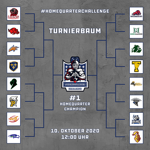 Zum ersten Mal können deutsche Vereinsmannschaften bei der „Homequarterchallenge 2020“ um den Titel bei einem American Football E-Sports-Event kämpfen. Insgesamt treten 16 Spieler aus ganz Deutschland in der Footballsimulation „Madden NFL 20“ im KO-System gegeneinander an.