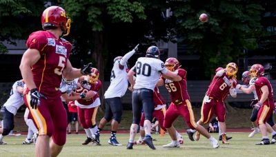 Die Troisdorfer Footballer bleiben mit ihrem fünften Sieg im fünften Spiel an der Tabellenspitze der Regionalliga NRW. Am kommenden Samstag steht dann der Showdown gegen die Assindia Cardinals in Essen auf dem Programm. Der Zweitliga-Absteiger hat ebenfalls fünf Spiele absolviert, eines davon aber gegen die Bulldogs aus Bielefeld verloren. Es dürfte also spannend werden.