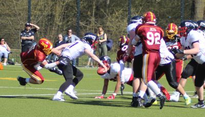 Das zweite Quarter verlief nicht viel anders. Die Offense mühte sich, kam aber nicht so recht voran. Die Runningbacks fanden nur selten Lücken in der Defense der Panther und Pässe fanden ebenso selten ihr vorgesehenes Ziel. Die dritte Interception machte das Ganze nicht leichter. Gegen Ende des ersten Quarters kam es, wie es kommen musste. Zwei Drives beendeten die Düsseldorfer jeweils mit einem Touchdown plus PAT. Bis zur Halbzeit stand es so bereits 0:24.