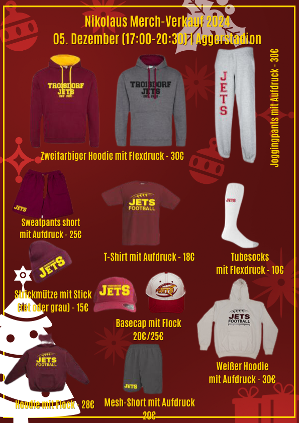 Es ist wieder soweit! Am 5. Dezember 2024 ab 17 Uhr laden die Jets zum großen Nikolausverkauf ein!