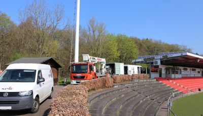 Seit November vergangenen Jahres schon ist das Areal rund um den Hauptrasen des Troisdorfer Schmuckkästchens weitläufig abgesperrt. Die maroden Flutlichtmasten drohten umzukippen und stellten damit eine zu große Gefahr dar. Also waren die Rasenfläche, die Tartanbahn, der Kraftraum und auch die nahegelegenen Wege und Parkplätze den gesamten Winter über gesperrt.