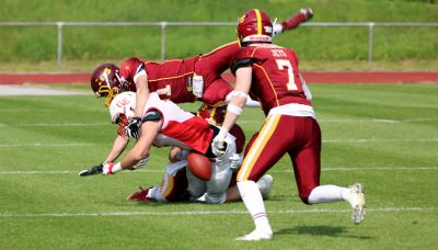 Dann ließen auch die Gäste ihr Können aufblitzen und bewegten den Ball unaufhörlich in Richtung Jets-Endzone. Tobias Goldmann schnappte sich einen Pass von Quarterback Thomas Iking zum 7:10 (PAT Kevin Bacher). Reichlich Unterstützung bekamen die Devils dabei von den Troisdorfern selbst, die Strafen über Strafen produzierten.