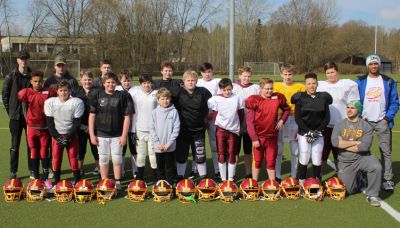 Head Coach Marcel Beckers und vier seiner Trainer-Kollegen nutzten den Samstagvormittag sowie den Sonntag, um die Spieler ein gutes Stück weiter in der Vorbereitung auf die Saison-Turniere zu bringen. 15 Spieler ließen sich von den frostigen Temperaturen am Morgen nicht abhalten, das erste Ferienwochenende dem Football zu widmen. Viele von ihnen waren auch am Samstagnachmittag im Aggerstadion, um weiter zu trainieren.