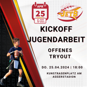 Jetzt hast auch du die Chance, Teil dieser aufregenden Entwicklung zu werden! Am Donnerstag, den 25.04.2024, starten die Troisdorf Flag Jets offiziell ihre Jugendarbeit im Flag Football. Egal, ob du selbst spielen möchtest oder dein Sohn/deine Tochter Interesse hat - komm vorbei und sei dabei!