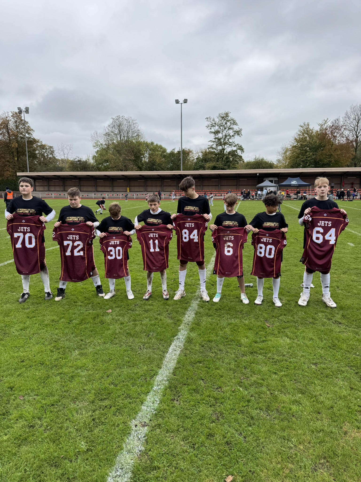 In einem packenden Spiel bewiesen die Future Jets eindrucksvoll ihr Können. Sie spielten hochkonzentriert und als geschlossenes Team gegen eine starke Düsseldorfer Mannschaft. Die mitgereisten Fans feuerten unser Team lautstark an und trieben die Spieler immer wieder nach vorne. Am Ende stand ein beeindruckendes 42:0 für die U13 der Troisdorf Jets auf der Anzeigetafel – und damit auch fest: Wir sind die Champions der NRW U13 2024!