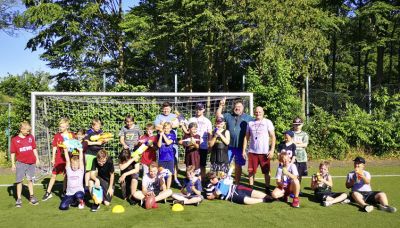 Ungewöhnliche Szenen konnte man bei der letzten Trainingseinheit der jüngsten Aktiven in der vergangenen Woche beobachten. Dabei trauten anwesende Zuschauer kaum ihren Augen, als sie das Treiben der FutureJets und der MiniJets sahen. Bei tropischen Temperaturen wurde nicht etwa in Helm und Shoulderpad trainiert, sondern leicht geschürzt sah man die jungen Wilden im leichten Badezeug um den Trainingsrasen wuseln.