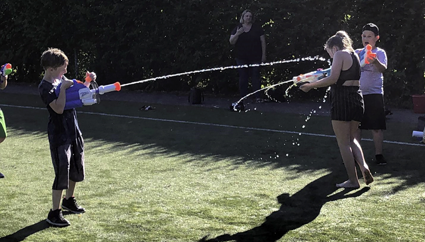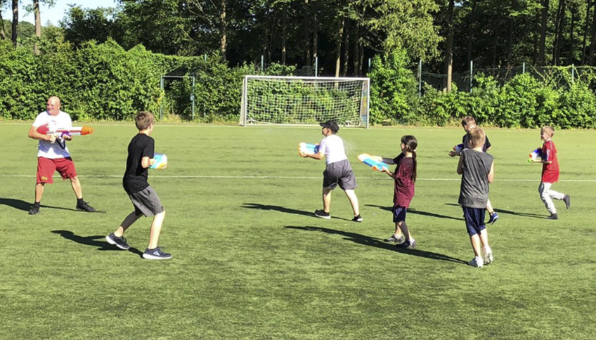 Den Assistant-Coaches Udo Vollbad und Till Nassmeier gelang es kaum, die Rasselbande von einer Pause zu überzeugen. Gerade für die Position des Waterbacks legten sich die Jungs und Mädchen mächtig ins Zeug. Immer wieder wurden die Shotguns gefüllt und die eine oder andere Wasserbombe flog tief in die Hälfte der Verteidigung - oder auch mal gerne auf die Trainer, die allesamt bald klitschnass da standen.